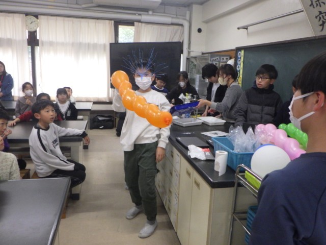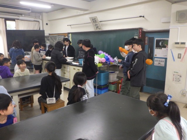 ロング昼休みに理科室では、引き続き理科委員会企画「スペシャル実験」が行われました。1・2年生(一部先週実施)の希望者(人数制限あり)が参加しました。