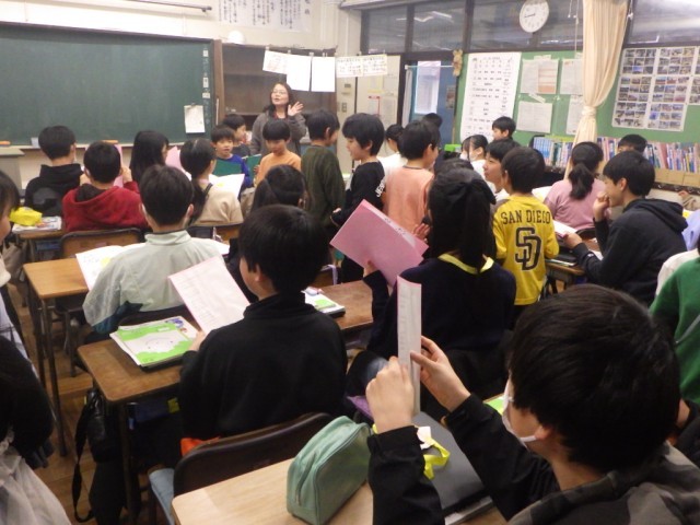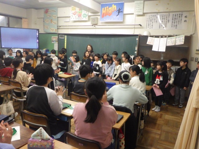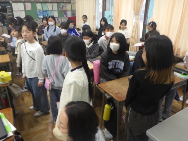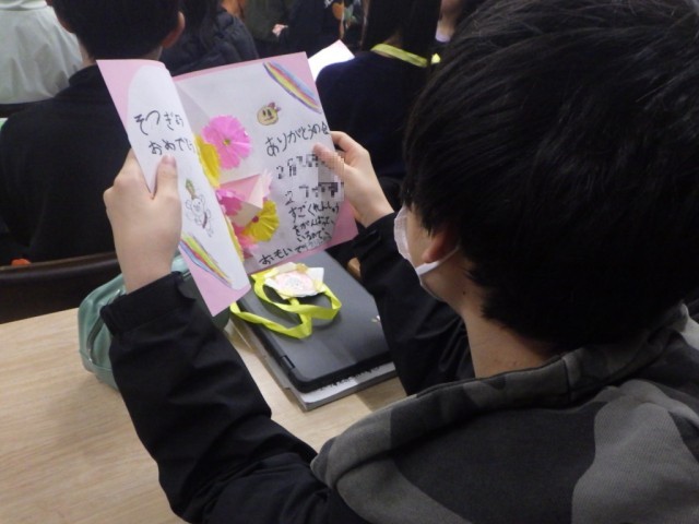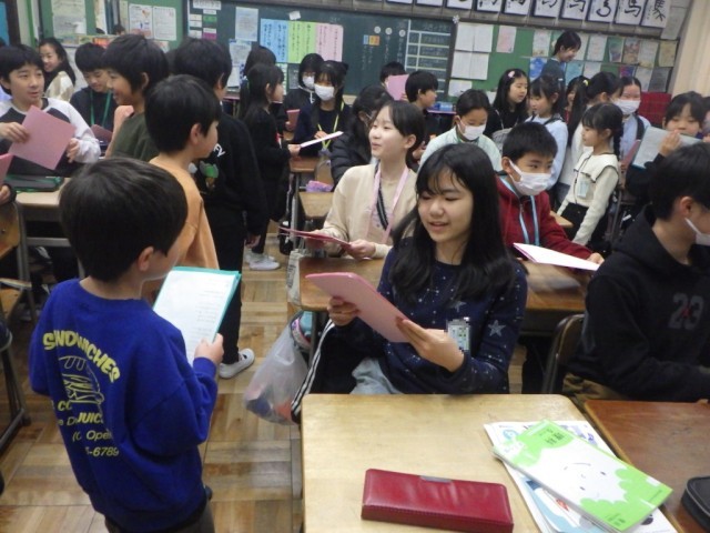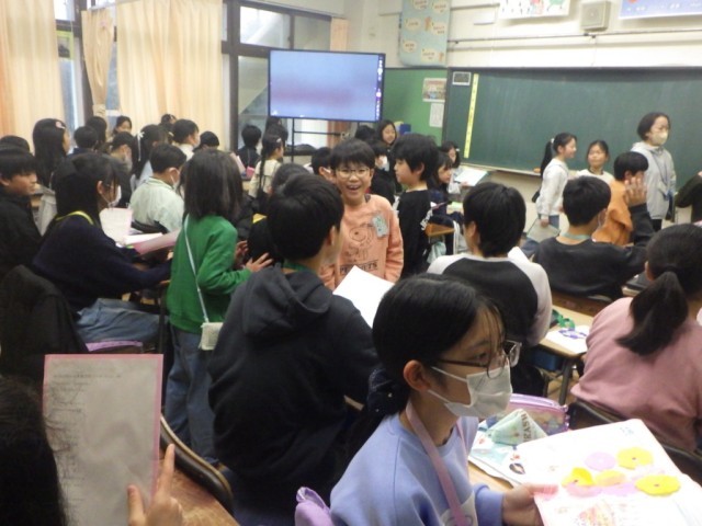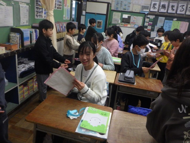 「ありがとうの会に来て下さい」と招待状を一人一人に手渡しました。6年生は1年生からのメダルと2年生からの招待状を手に、「ありがとうの会」に臨みます。