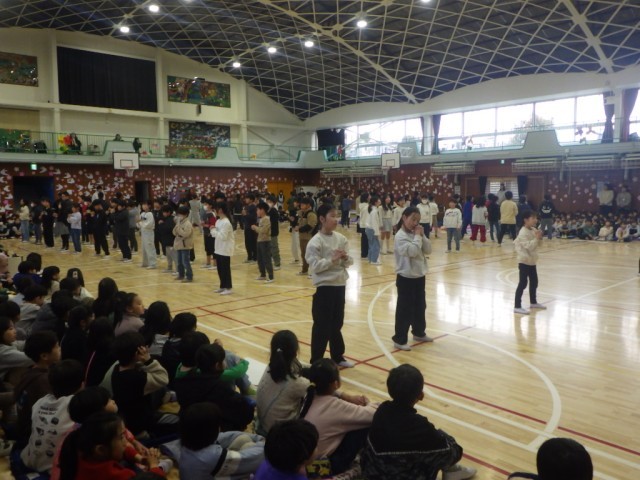 「4年生の発表」です。「カイト」の歌詞を手話で表現しながら、ダンスを組みこみ表現しました。体育館中が幻想的な世界に包まれました。6年生、カイトのようにツから強く飛びたちます。会の後半は、明日(27日)アップする予定です。