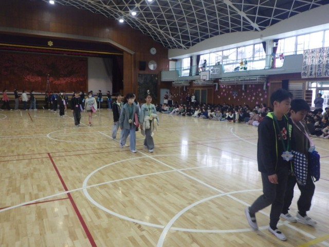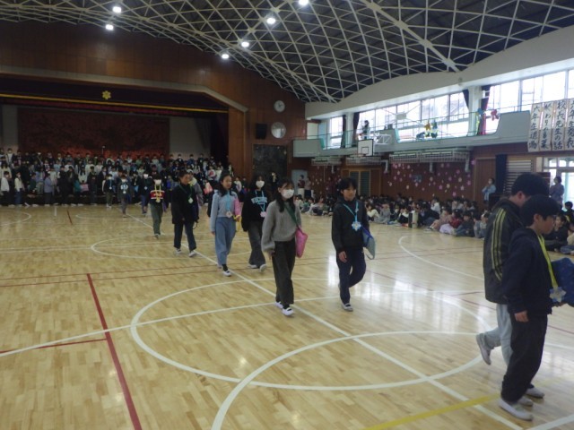 6年生、退場の様子です。最後は、素敵な会を企画運営した新児童会役員のメンバーです。※26日の様子です。
