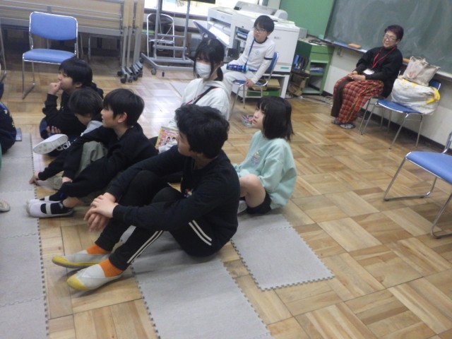 5校時、お話しの部屋で「なかよし・みのり学級 お話し会」が行われました。絵本の世界に浸ったり、指遊びで楽しんだりしました。ボランティアのみなさん、素敵なひとときをありがとうございました。