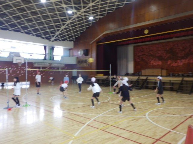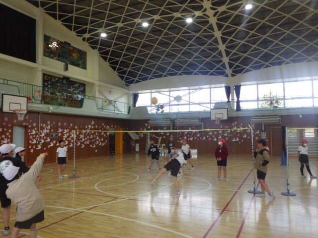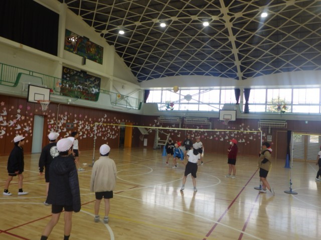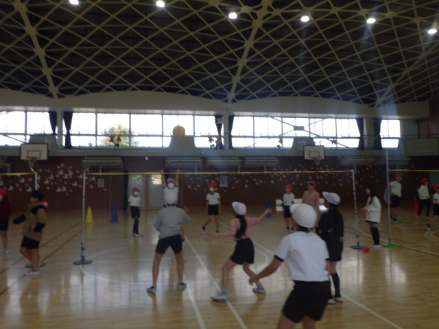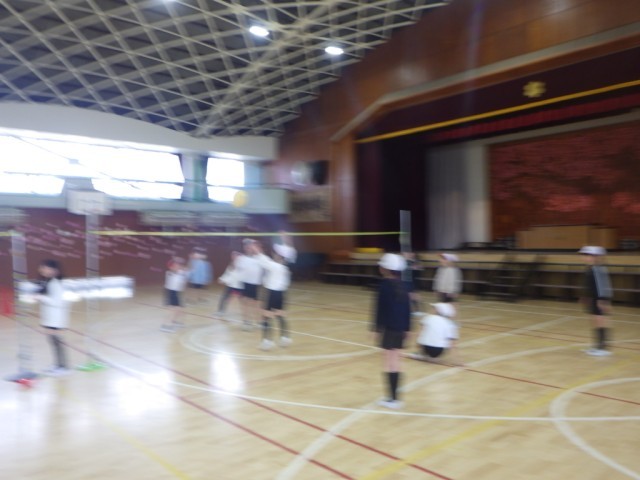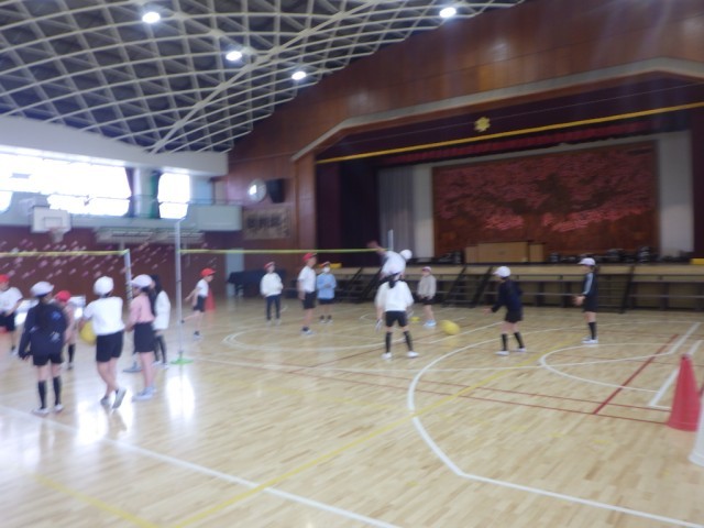 「キャッチバレーボール」の様子です。ラリーが続くようにチームで練習をしています。