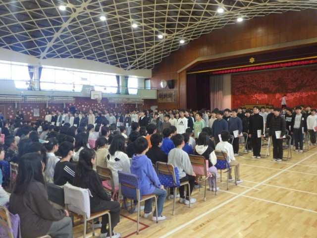 卒業証書授与では、本番さながらの緊張の面持ちで臨んでいました。その後、「卒業の言葉」と流れていきました。