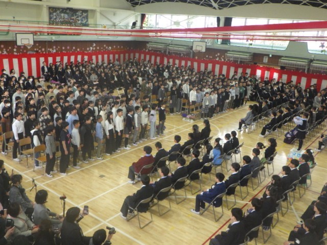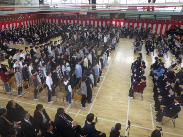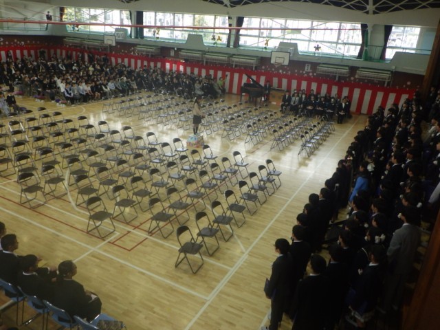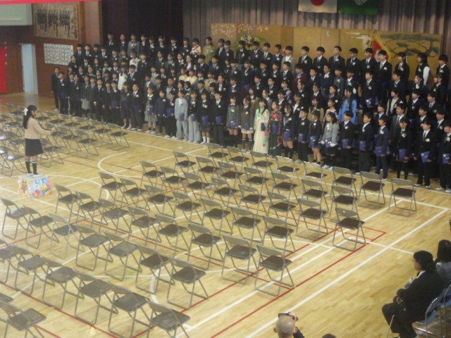 「卒業のことば」の様子です。在校生代表のことばから、卒業生からのことばと移っていきます。