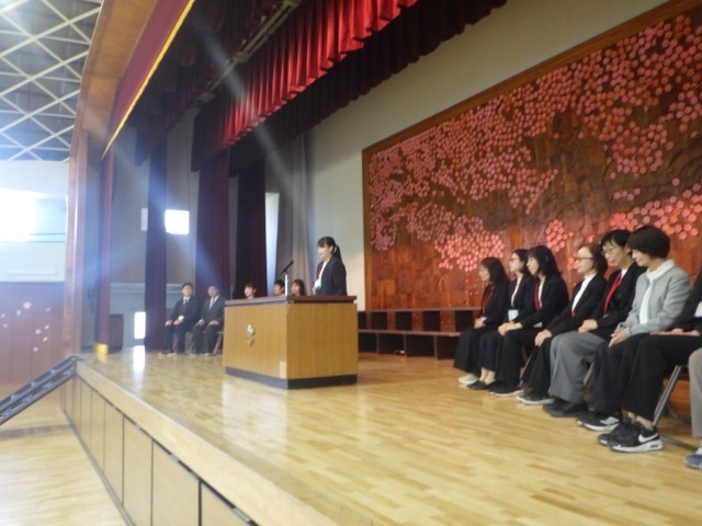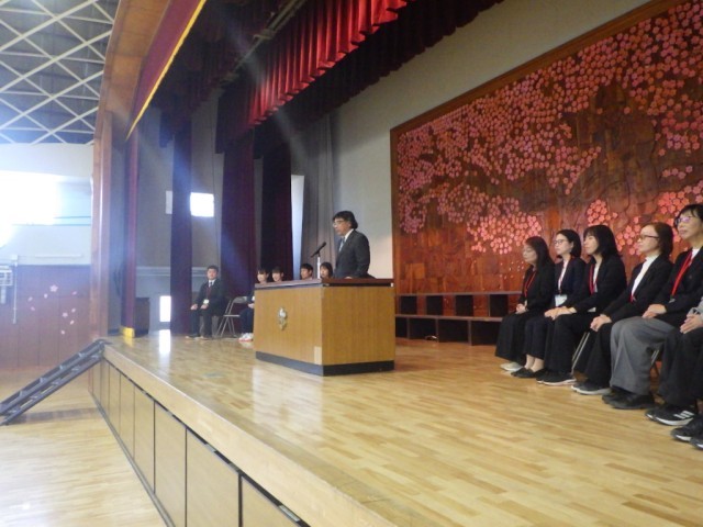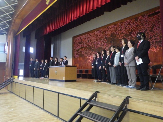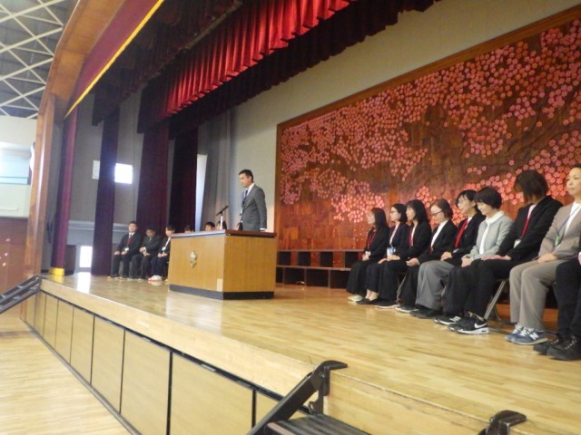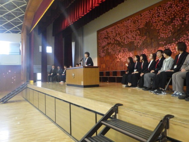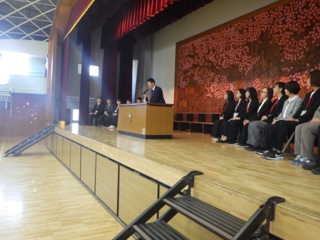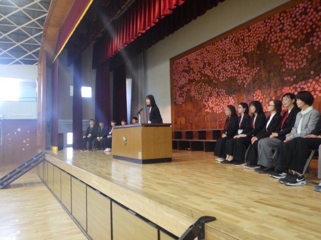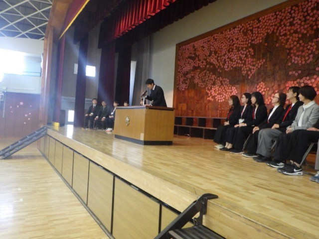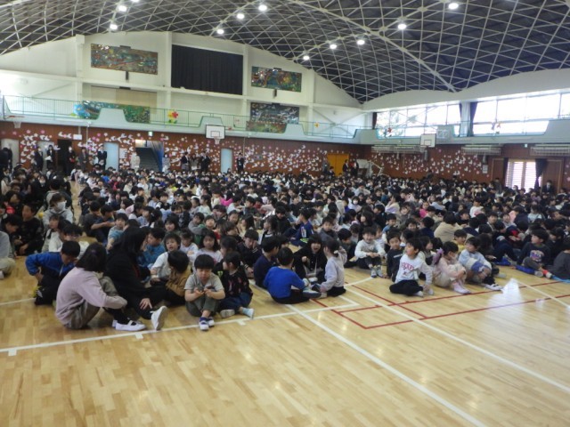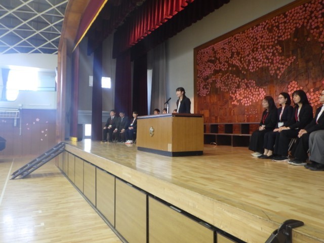 お世話になった先生方とのお別れの会である辞校式が体育館で行われました。開式のことばに続き、学校を去られる先生方からのことばが子どもたちに伝えられました。