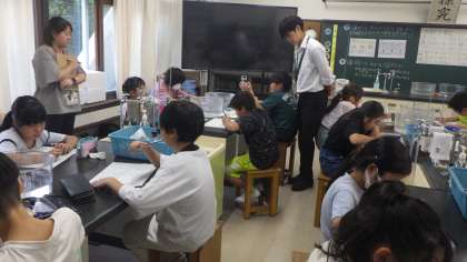 10月2日 5校時 鎌ケ谷市教育委員会指導訪問が行われました。その時の授業の様子です。「ものの温度と体積」の学習の様子です。空気・水の温度が変わると空気・水の体積はどうなるだろうか。実験の方法を確認した後、実験にとりかかり、観察、考察へと進みました。みんな、興味津々の時間となりました。