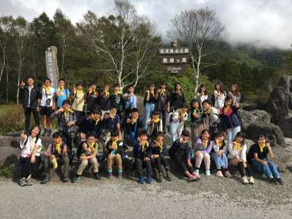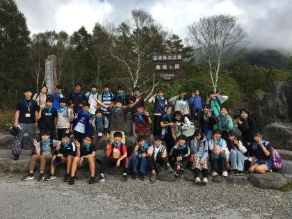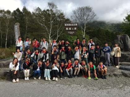 戦場ヶ原は歩きませんが、三本松園地で集合写真を撮りました。行いがよいので、日が差してきました♫