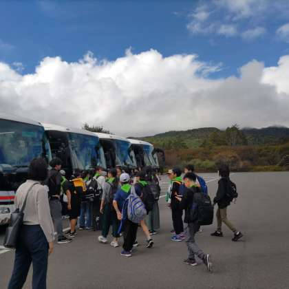お昼を終えて、三本松をまもなく出発します。青空が気持ちいいです。