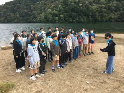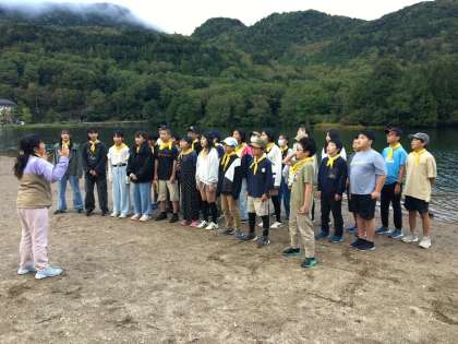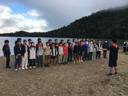 湯の湖畔で気持ちよく合唱練習をしています。歌声が響きます。