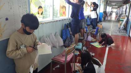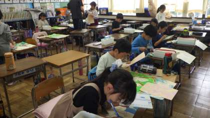 10月10日 3年生 図工 公開日 2024/10/10 更新日 2024/10/10 鎌小の毎日 「人物と蝶」をテーマに絵画作品が創られています。蝶の羽には、マーブリングの技法を用いた綺麗な模様がはられていきました。かいて、、作って、切って、はって・・・自分のイメージを作品として仕上げています。 いいね(0)