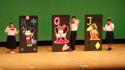 一人一人が、練習の成果を存分に発揮しています。大盛況の内に、1日限りのショーが終了しました。会場が、熱く、温かい拍手に包まれました。そsて、先輩である鎌ケ谷中学校の発表にも釘付けとなりました。恒例のマジックショーです。