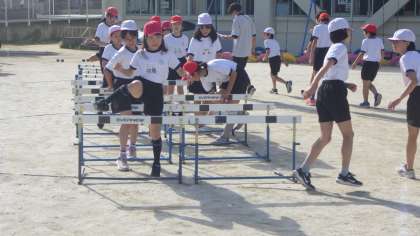 陸上部の練習の様子です。11日の様子を紹介します。中距離走、ハードル走、走り幅跳びの練習風景です。