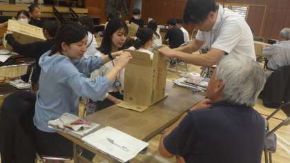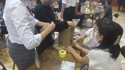 次に、牛乳パックスプーンそして、段ボール簡易イスを作りました。