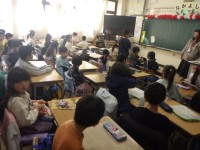 大型提示装置を使って、学習を進めています。体を乗り出して、問題に臨んでいました。