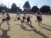 体育館体育の様子です。まずは、2クラス合同の準備運動です。準備運動の後はいよいよ運動遊びです。ゆっくりゆっくり歩いた後、途中から急に走りました。※10日の様子です。