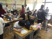 ALTの先生や外国語担当の先生、そして担任の先生や介助の先生と一緒に外国語活動並...