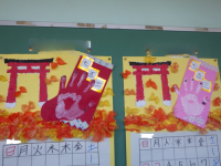 廊下掲示には、今月のカレンダーや季節の掲示物で彩られています。秋が深まっています...