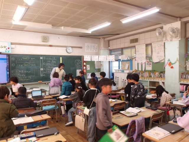 算数の学習で、同じ「4倍」でもいつも同じ大きさとは限らないことを確認しました。