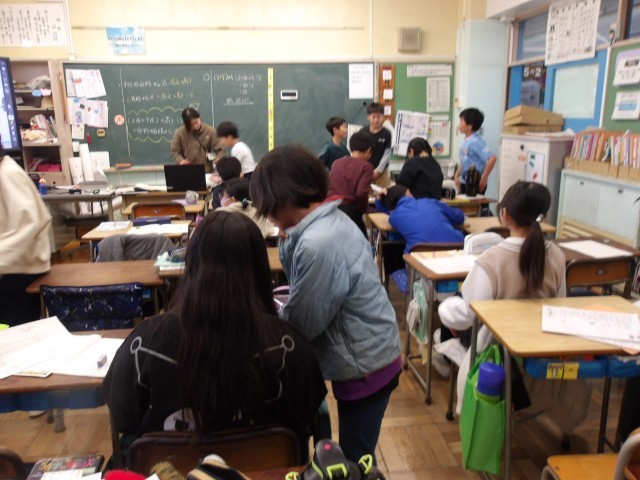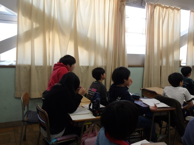 問題を解き終わった子はミニティーチャーになり、友達同士で教え合いもしていました。