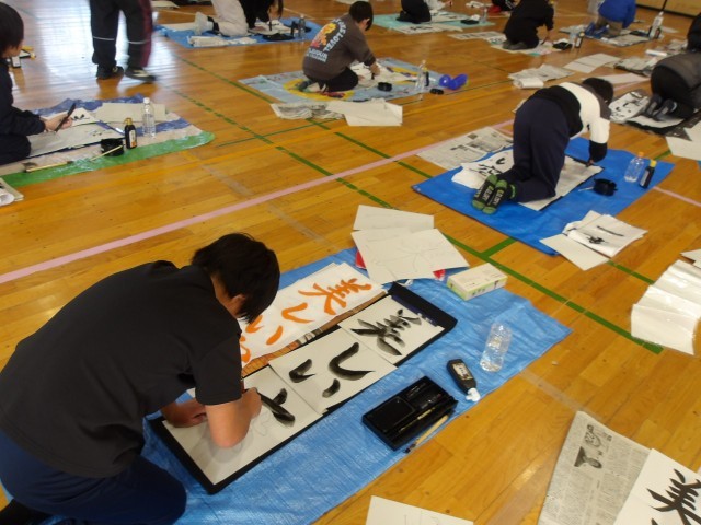 外部の先生をお招きして、姿勢から筆の運びまで丁寧にご指導いただきました。