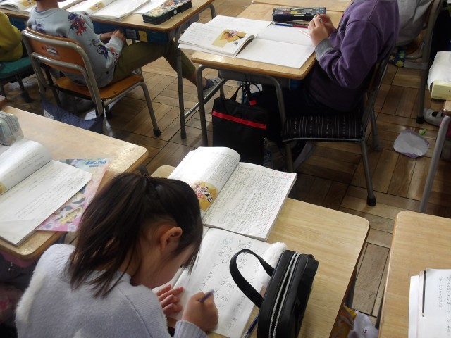 文章や言葉から、それぞれがわかったことや感じたことを、教科書にたくさん書き込んでいました。