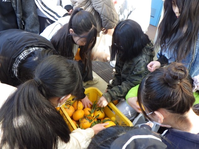 先週、6年生が校内でみかん狩りを行いました。