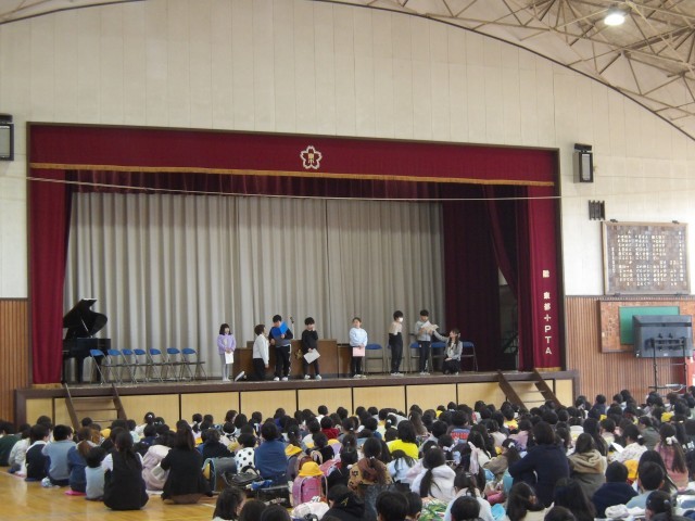 修了式では各学年代表児童から、「がんばったこと」の発表があったり、