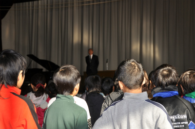 終業式では、校長先生の話(配布文書「校長室便り」参照)、児童代表の話(2学期頑張ったことを発表してくれました。)、生徒指導の話、校歌斉唱がありました。
