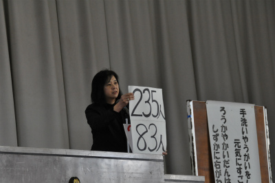 平成24年度第3学期始業式 公開日 2013/01/07 更新日 2013/01/07 学校行事 本日は、今年度3学期の始業の日。久しぶりに全校児童が体育館に集まりました。 校長先生がお話の中で、「七草」を教えて下さいました。ご家庭でも話題にしてみて下さい。 生徒指導のお話は、養護の先生から「手洗いうがいの大切さ」と「廊下階段歩行」についてでした。 お話の後は、転入してきた児童の紹介と校歌斉唱です。校歌は、転入生への歓迎の気持ちを込めて大きな声で元気よく歌うことができました。 いいね(0)