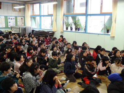 3年生の春から学び始めたリコーダー。自分たちなりに良い音色を響かせることができるようになってきました。今回、専門家の先生により良い演奏ができるポイントを、丁寧かつ楽しく教えていただきました。