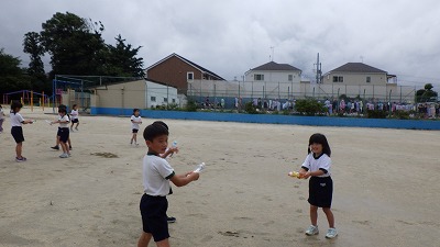 最初の方は、様子を見ながら少しずつ水をかけあっていました。