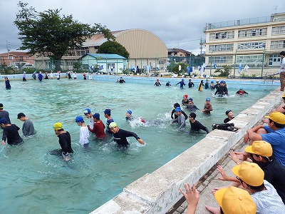 小学校生活最後のプール学習!! 公開日 2022/07/15 更新日 2022/07/14 学校の様子 今日は小学校生活最後のプール学習でした。いつもとは違い、川や海でおぼれてしまった時の行動を学ぶために着衣泳を実施しました。服を着る前に比べて体が浮きにくくなるということを身をもって実感することができました。服の中に空気をためて浮く方法を学び、万が一に備えることができました。 いいね(0)