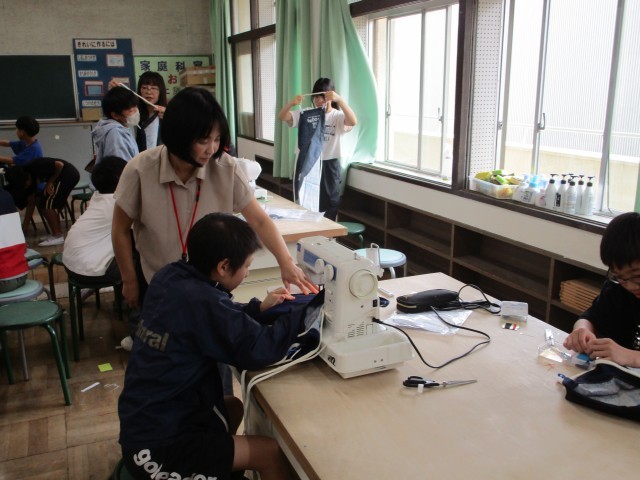 はじめはミシンの扱いに緊張していた児童も、練習を重ねる中で使い方に慣れ、今では手際よく直線縫いや返し縫いをこなせるようになってきました。針の通り道や布の向きにも気を配りながら、丁寧に仕上げようとする姿が印象的です。