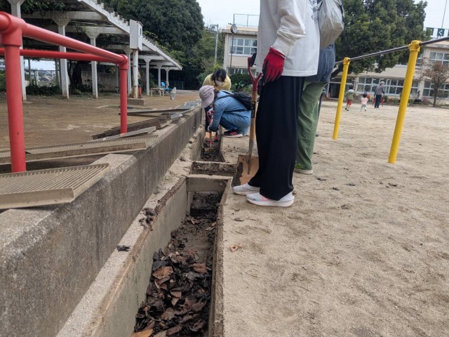 とはいえ、今回ご参加くださった皆さんが積極的に動いてくださったおかげで、1時間ほどで運動場を囲む側溝がとても綺麗になりました。少人数ながらも、力を合わせての作業に感謝の気持ちでいっぱいです。