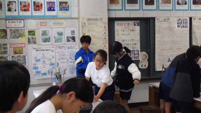 授業や休み時間の活動をともにする中で、中学生は小学生の目線に立って関わろうとする姿勢を見せ、児童もすぐに打ち解けていました。中学生に話しかけたり、一緒に活動したりすることで、児童たちにとっても貴重な時間となりました。