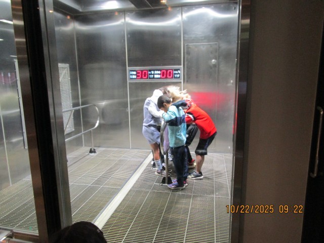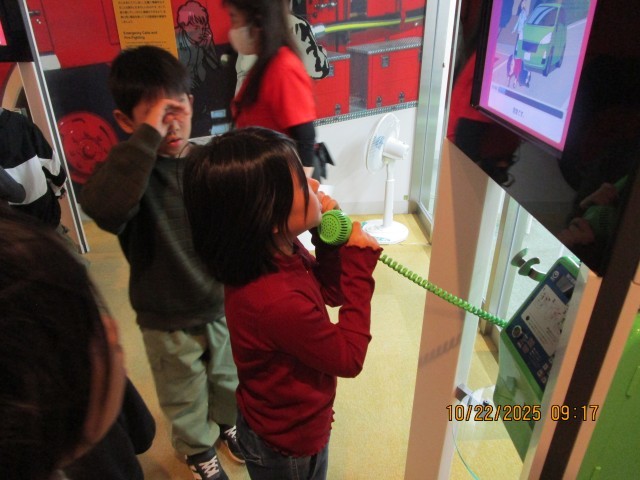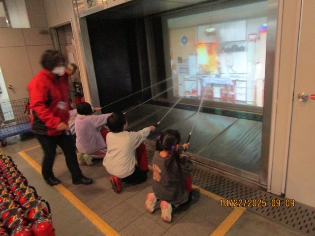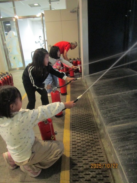 1・2年生が合同で校外学習に出かけました。午前中は西部防災センターを訪れ、災害についての理解を深める学習を行いました。館内では、実際に消火器を使った初期消火訓練や、強風体験などの体験を通して、災害時に自分の命を守る方法について学ぶことができました。