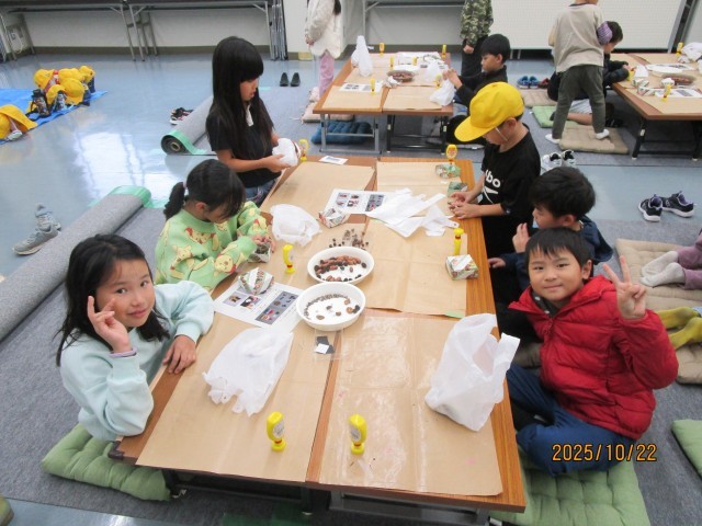午後は21世紀の森と広場に移動しました。途中で雨が降る場面もありましたが、屋内でのクラフト体験子どもたちは集中して作品作りに取り組み、思い思いの作品を完成させることができました。