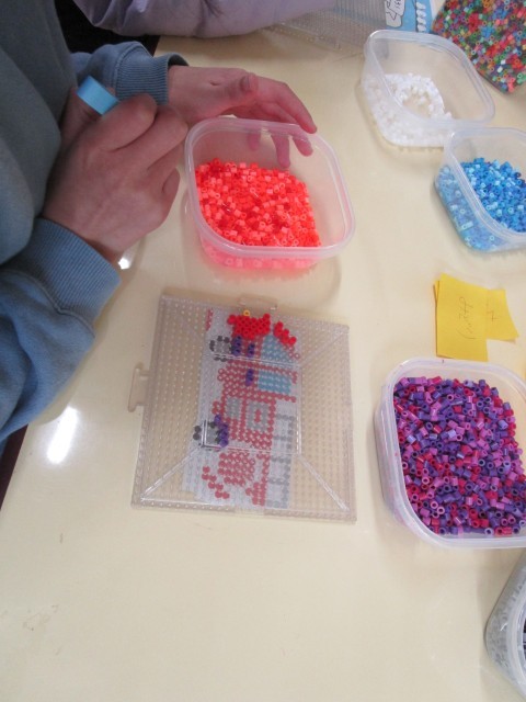 かがやき学級では、図工・生活単元の一環としてアイロンビーズを使った作品づくりに取り組みました。