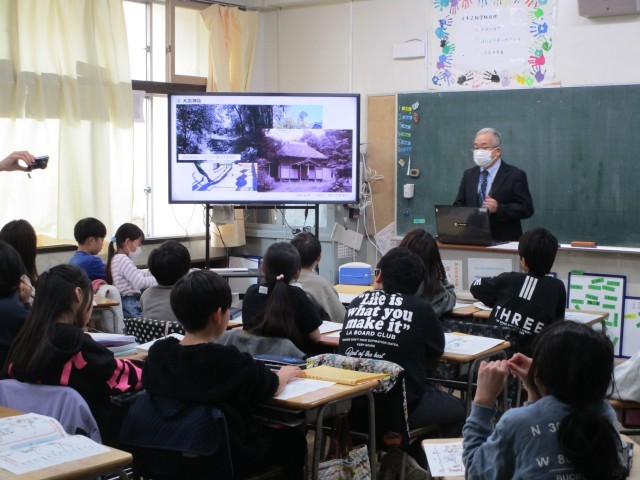 4年生は総合的な学習の時間に、鎌ケ谷市の歴史や文化について理解を深めることを目的に、郷土資料館の館長さんをお招きしてお話を伺いました。
