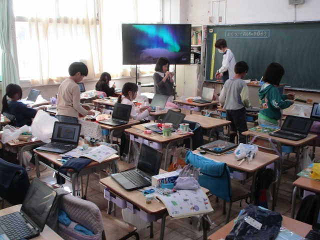 「楽しさひろがれ、わたしのおもちゃ」では、自分の作ってみたいおもちゃを身の回りのものを使って教科書を参考にしながら作りました。