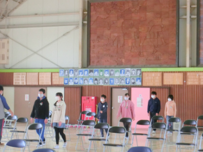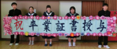 三中生が卒業式を終えて、挨拶をしに来てくれました。