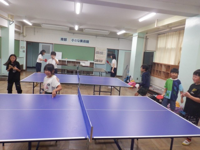テーブルゲームクラブは「人生ゲーム」をしていました。サッカークラブの練習・試合では、かっこよく強いシュートを撃てる子もいました。卓球クラブでは、ゲーム形式で上達を目指していました。