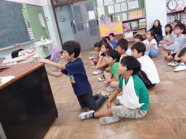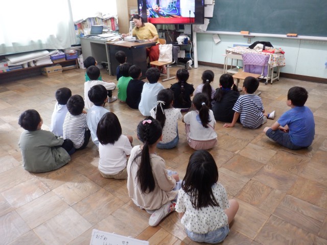 読み聞かせボランティアの皆様が絵本を読んでくださっています。
