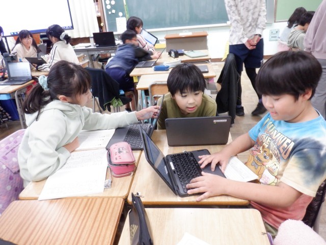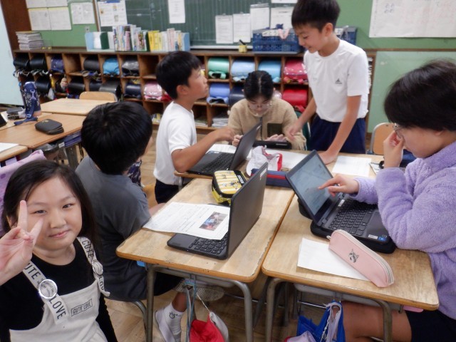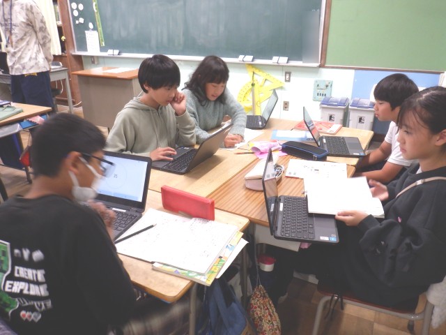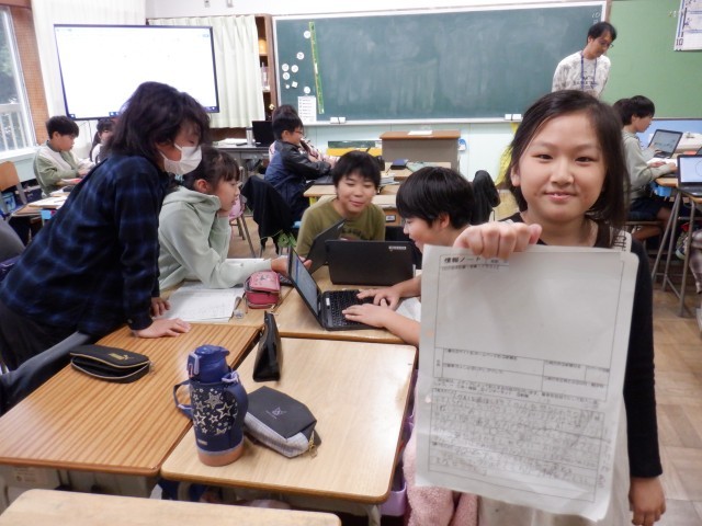 タブレットで調べたながら「情報ノート」を書いています。もうすでに完成した子もいるようです。読んでみたいです。