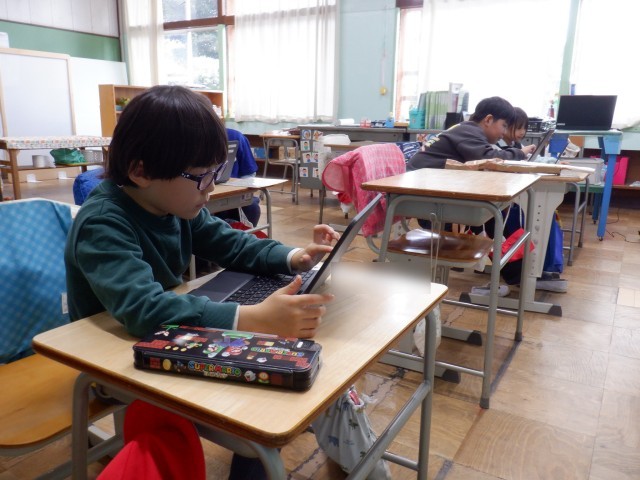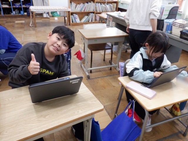 クロームブックでタイピングなどをしています。夢中になれる楽しいタイピングが何種類もあります。