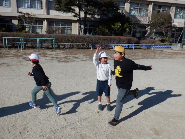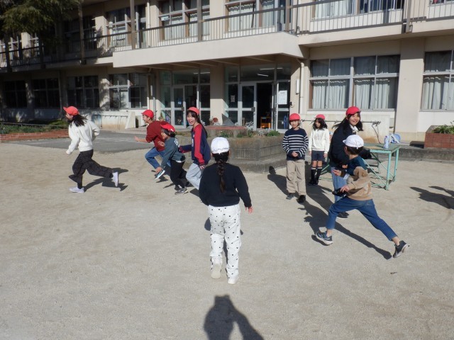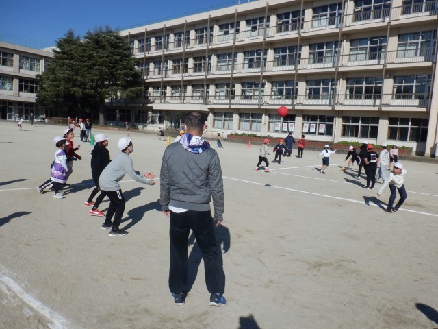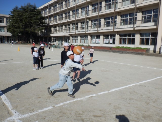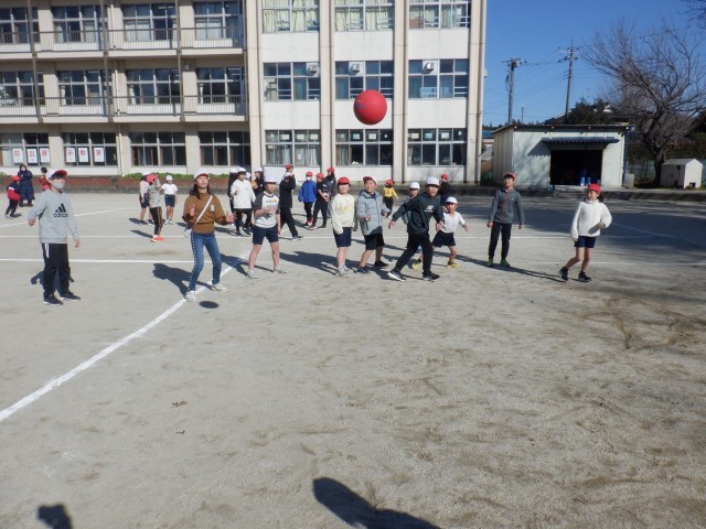校庭では、ドッジボールやバナナおになどをして楽しんでいました。1年生から6年生までいるので、手加減をしてくれる6年生のやさしさが光っていました。