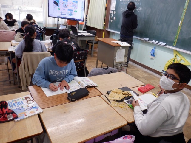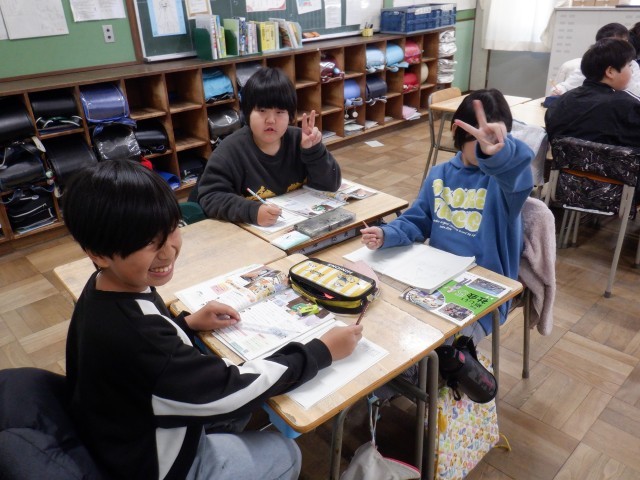 コンビニの商品が店頭に並ぶまでのルートについて学んでいました。カメラ目線をくれ過ぎる5年生達です。先生、授業中にすみません(^_^;)
