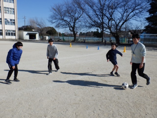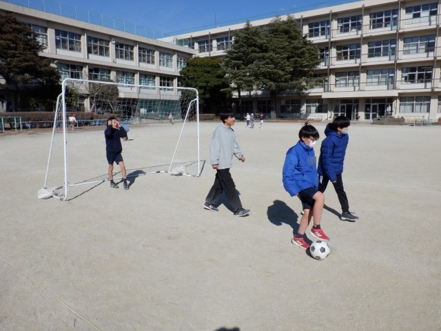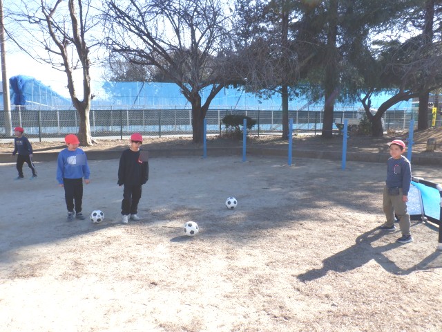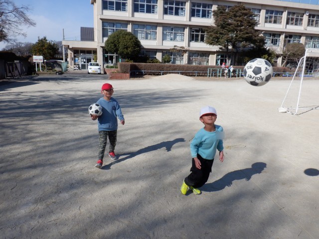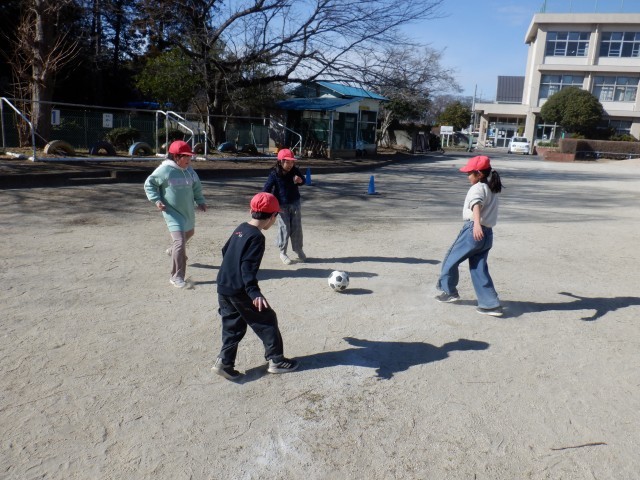 今日もサッカーが大人気で、いろいろな学年の子達が楽しんでいます。風邪にも打ち克つために体力づくりです!!