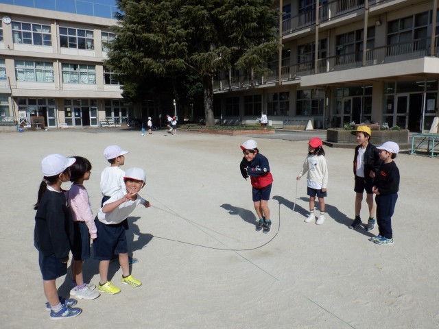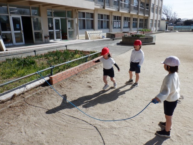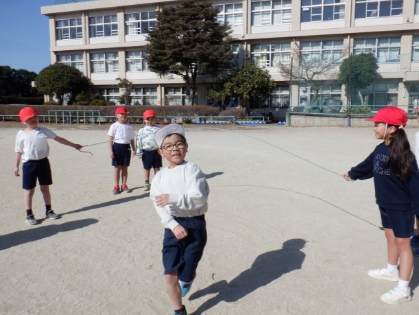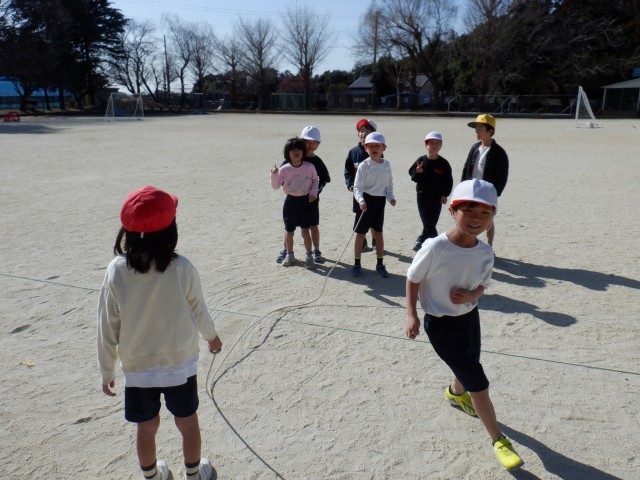 長縄にチャレンジしていました。まだ連続ではできていませんが、タイミングを合わせて一人ずつ跳んでいます。どこまで上手になるか楽しみです。