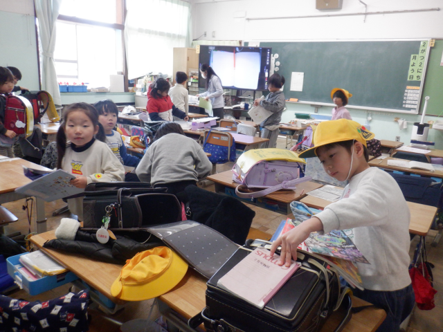 配布物が多い日は大変ですが、帰りの支度は一人ですることができます。できることがどんどん増えています。